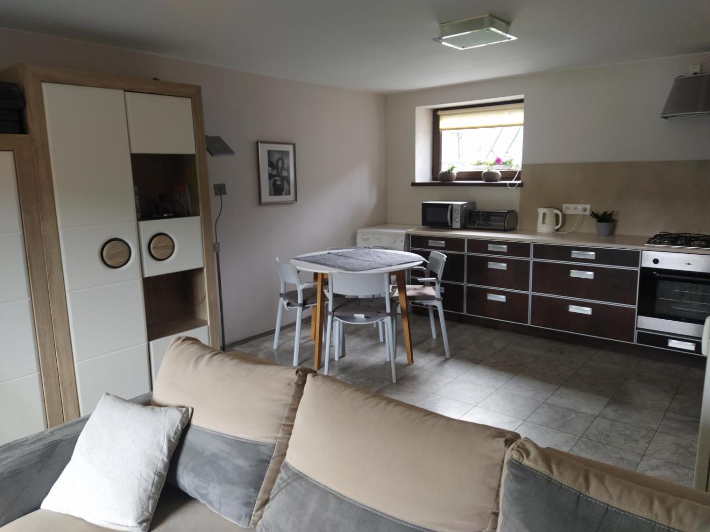 Apartament z 1 sypialnią. Featuring a private entrance, this apartment is comprised of 1 living room, 1 separate bedroom and 1 bathroom with a bath and a hairdryer. Guests will find a stovetop, a refrigerator, a dishwasher and kitchenware in the well-equipped kitchen. The apartment also has a barbecue. Boasting a terrace with garden views, this apartment also offers a washing machine and a flat-screen TV. The unit offers 2 beds. Apartament - 4 osobowy. Powierzchnia pokoju ok.: 45 mkw.