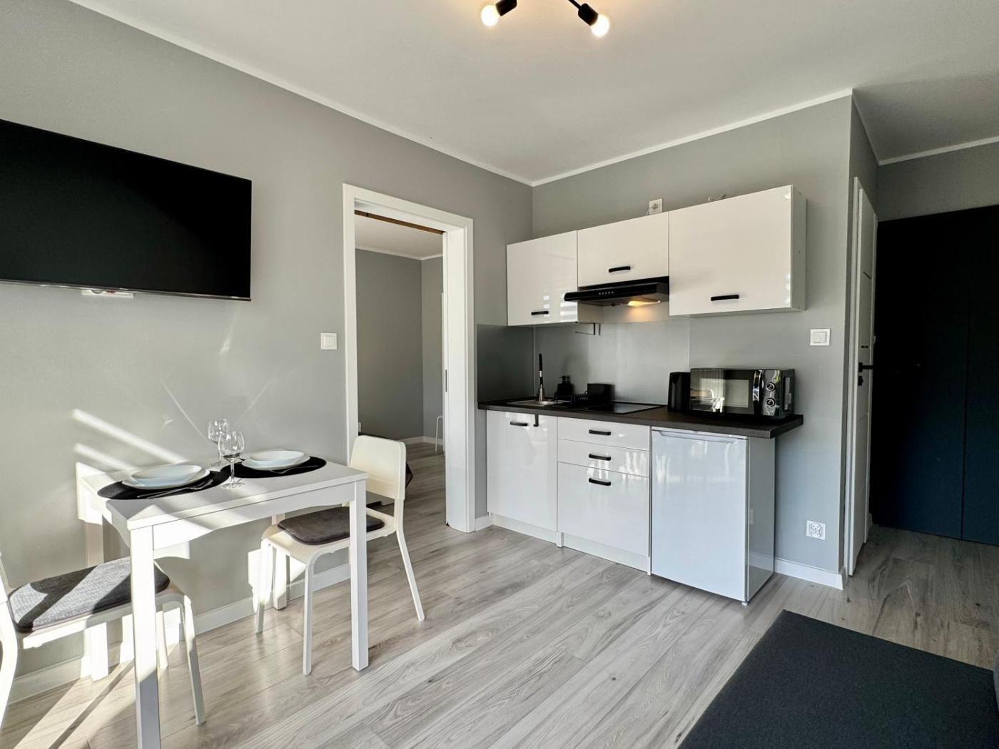 Apartament typu studio z balkonem. This apartment consists of 1 bedroom, a kitchenette and 1 bathroom with a shower and a hairdryer. Guests can make meals in the kitchenette that is equipped with a stovetop, a refrigerator, kitchenware and a microwave. This apartment features a wardrobe, an electric kettle, a flat-screen TV and a balcony. The unit offers 2 beds. Apartament - 4 osobowy. Powierzchnia pokoju ok.: 30 mkw. ;